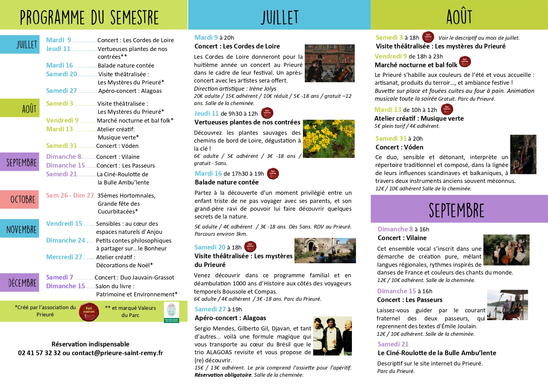Here is the entire programmation for the second 2024 semestre of Les Rendez Vous du Prieuré!
