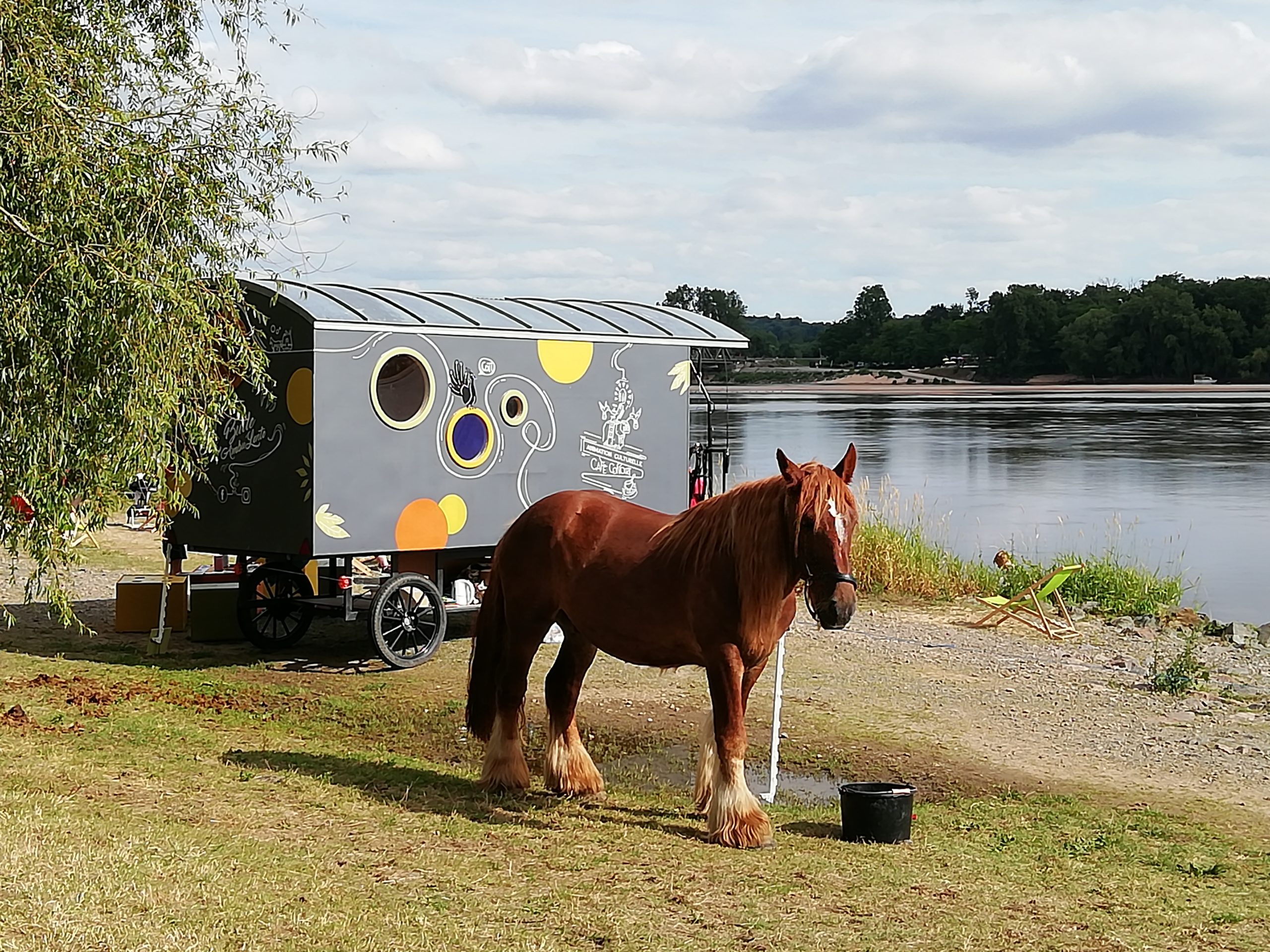 Les déplacements en roulotte d’un site à l’autre sont ouvert à tous ! Une opportunité pour découvrir la traction animale, avec Éole le cheval de trait poitevin.